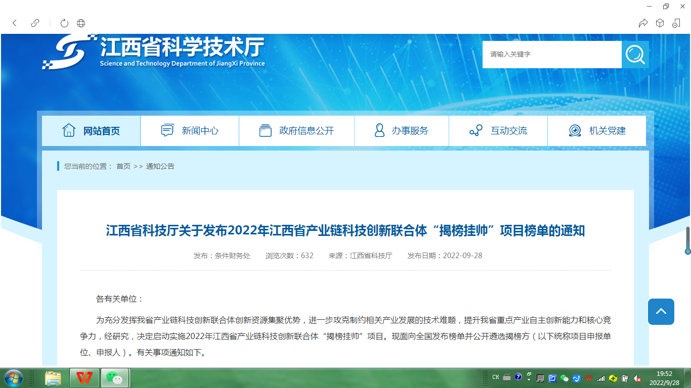新闻中心讯 为充分发挥我省产业链科技创新联合体创新资源集聚优势,进一步攻克制约相关产业发展的技术难题,提升我省重点产业自主创新能力和核心竞争力,近日,江西科技厅发布2022年江西产业链科技创新联合体“揭榜挂帅”项目榜单,江西省纺织服装产业科技创新联合体两个项目——基于竹源纤维素的聚乳酸纤维制造关键技术研究、新型苎麻织物抗菌柔软整理剂研发及产业化上榜2022年江西产业链科技创新联合体“揭榜挂帅”项目。