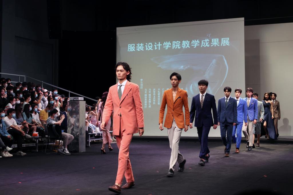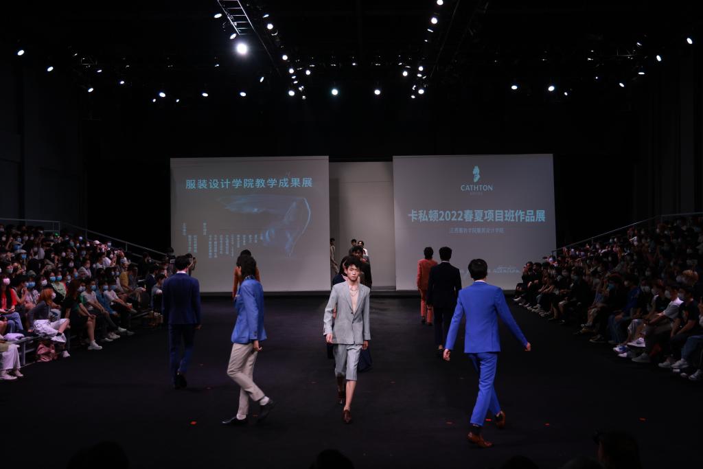本次成果展结合成衣动态秀、3D动态秀等形式,共展出“CHEN.1988(女装)” “江服精英学子创业训练营” “卡私顿高定(男装)”“锦周童装” “三维(潮牌)” “新中式” “伯仲(羽绒)” “波司登(羽绒)” “婚纱” “礼服”10个项目的近300套服装,分为女装、男装、童装、潮牌服装、中式服、羽绒服、婚礼服7个系列。参展项目内容丰富、形式多样,吸引了众多师生前来观看。