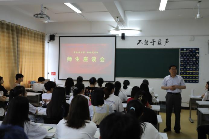 下午1:50,薛校长在校长助理兼人文学院院长马国照、组织部部长陈翠娥的陪同下走进主教学楼344教室,来到人文学院20广告本科1班,以《读毛诗、忆党史、树理想、见行动》为主题,为同学们上了一堂精彩的党史教育课。薛校长通过分享毛主席在江西老区领导革命斗争时所写的诗词,带领同学们一起感悟伟人的伟大思想,学习伟人为了民族独立和人民解放,不怕困难,浴血奋战,攻艰克难,带领中国人民站起来的伟大壮举。薛校长对毛主席诗词及由诗词延伸出来的党史、军史的深入浅出的讲解让同学们敬佩不已,大家在学习理解毛主席诗词的基础上,还了解了发生在上世纪二十年代赣闽湘地区的一段党的光辉历程。薛校长讲到,中华民族正处在伟大复兴的关键时期,大好的形势来之不易,作为青年一代,我们要树立远大理想,用实际行动回报祖国和社会。薛校长以共和国勋章获得者、杰出科学家袁隆平院士的先进事迹和可贵精神告诫当代大学生要刻苦学习、脚踏实地、勇于实践、敢于创新、求真务实。薛校长还结合自身成长各个阶段的奋斗历程,鼓励同学们要树立远大的理想,成就美好人生。