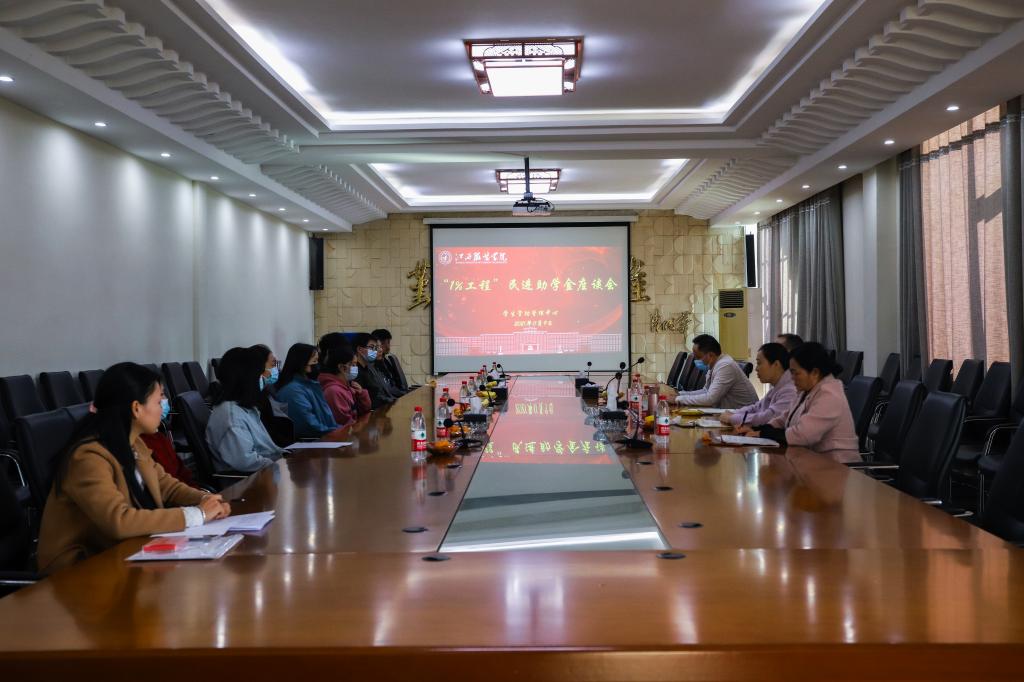 新闻中心讯(记者李珊 实习记者 张思珍)11月9日下午,我校在行政楼二楼会议室开展2021年“1%工程”民进助学金座谈会。此次座谈会主要为进一步了解“1%工程”民进助学金受助学生的学习、生活以及思想动态等情况,帮助他们及时解决所遇到的困惑。校党委副书记唐新强,组织部部长陈翠娥,民进万象城平台支部主委、时尚传媒学院副院长李有为,资助中心主任余晓萍,资助中心干事余琼欢出席座谈会,10名“1%工程”民进助学金受助学生参与座谈会。座谈会由资助中心主任余晓萍担任。