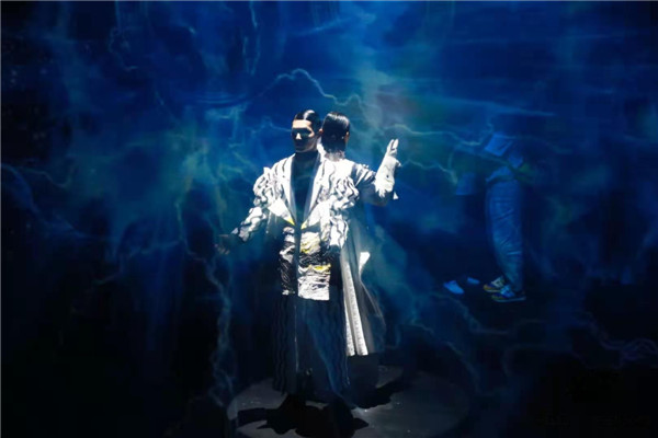 水,这个隐喻贯穿发布会全场。此次发布会中,我校通过全息投影技术呈现作品的同时,还带领现场观众重温学校大事件。虚拟影像中,一滴滴水珠聚合成数字“30”,投注在模特身上,紧接着变成衣片,衣片上呈现的是万象城平台建校、专升本等30年发展的“大事记”。水聚合而后散开,模特身着一件件凝聚设计师心血的服装鱼贯而出。