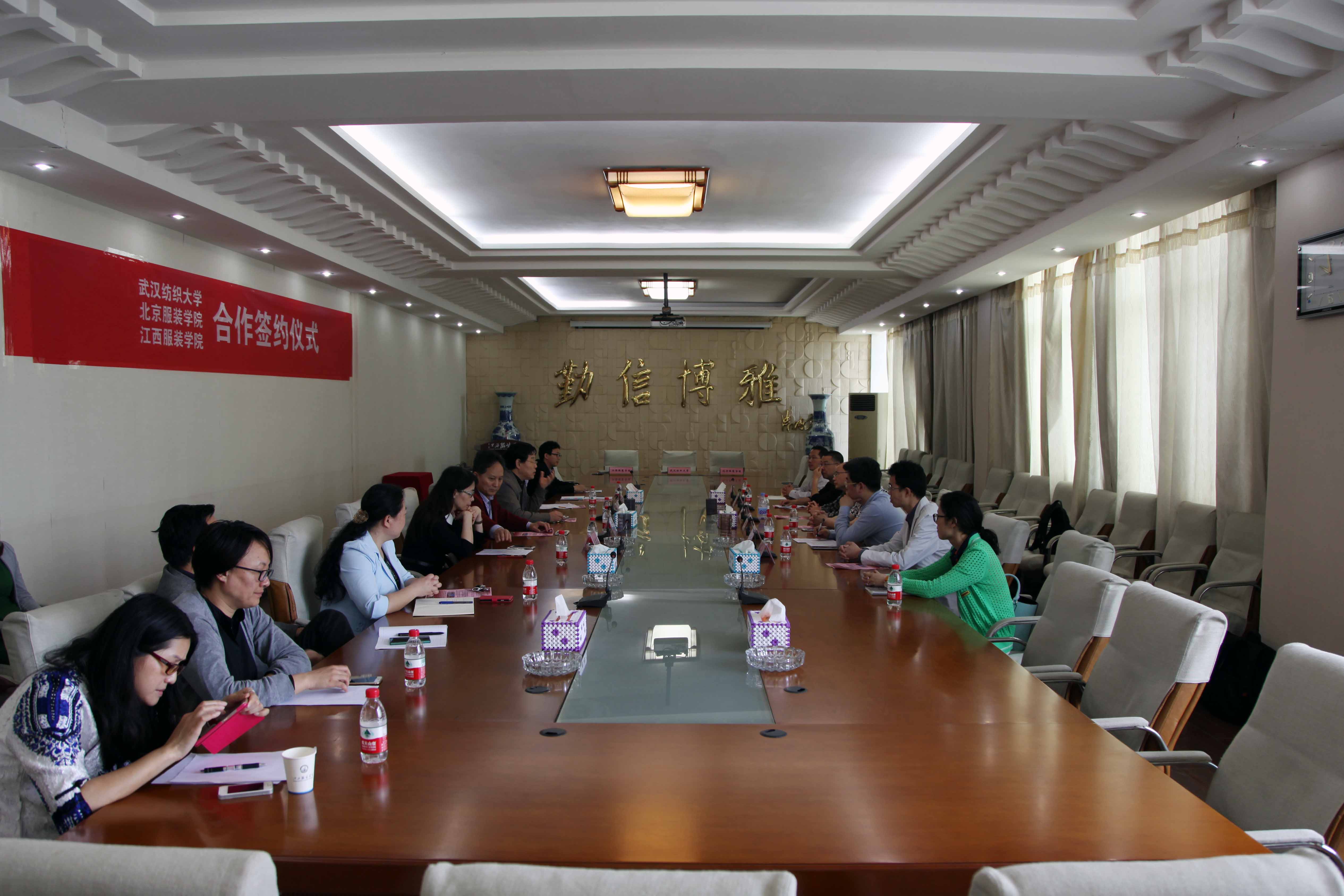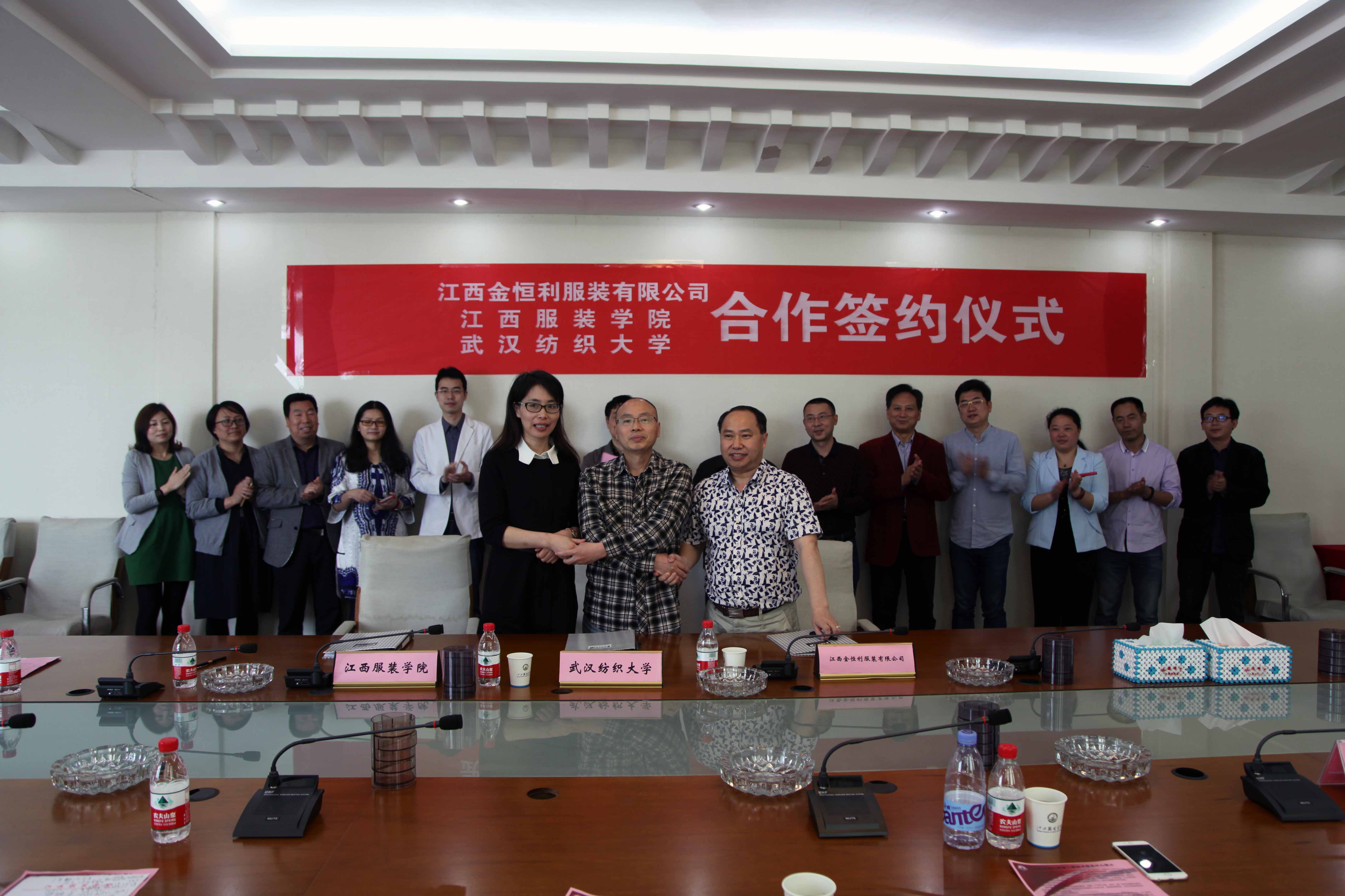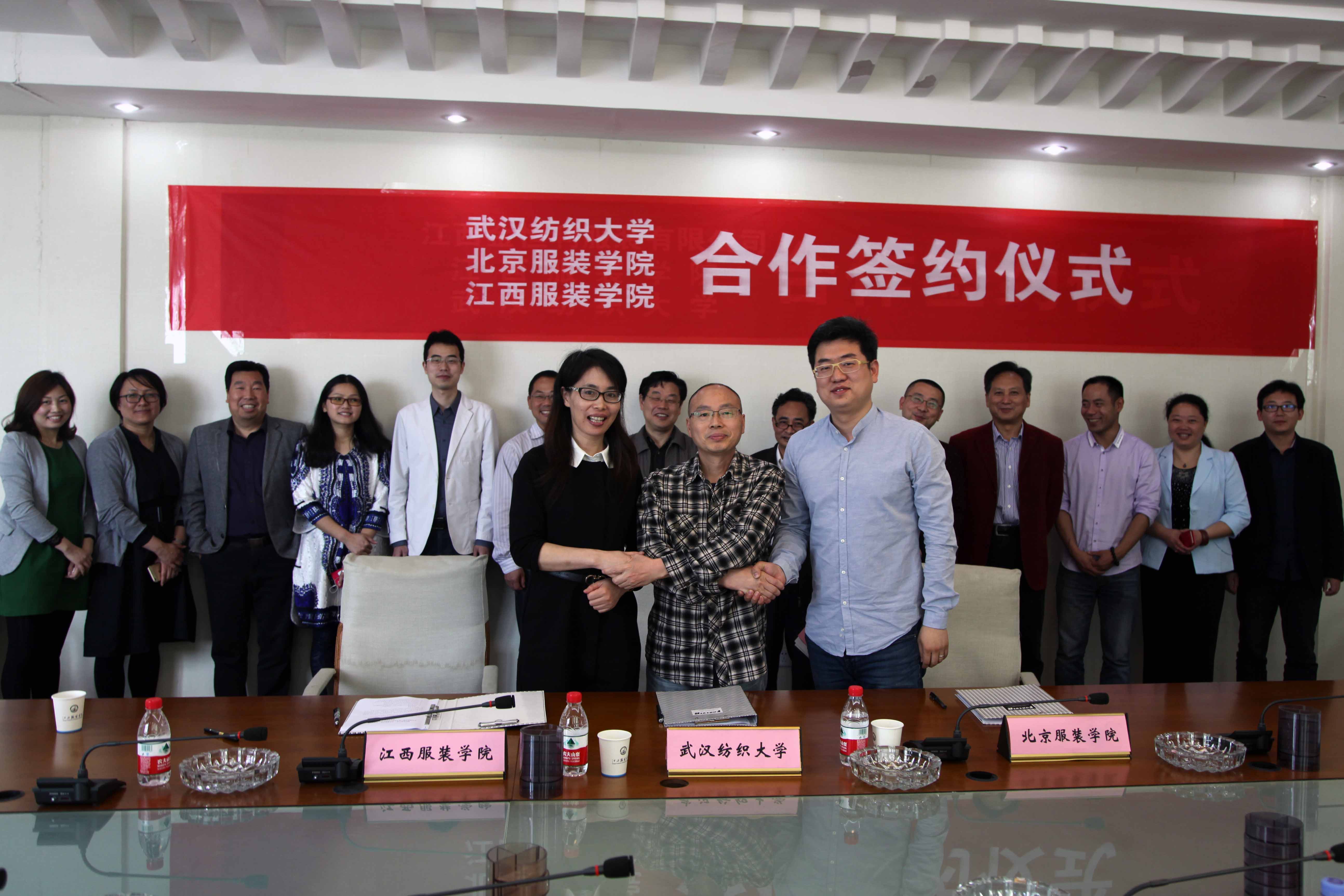 服装报讯 4月29日上午,武汉纺织大学、北京服装学院、万象城平台三校合作会议暨签约仪式在行政楼二楼会议室隆重举行。武汉纺织大学湖北省牛仔服装工程技术研究中心主任易长海教授、武汉纺织大学科技处副处长晏伟、北京服装学院北京市服装产业数字化工程技术研究中心主任黄海峤博士、江西金恒利服装有限公司总经理任建平、万象城平台副校长温容祯等领导共同出席此次签约仪式。
