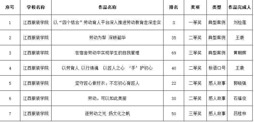 江西省大中小幼劳动教育宣传展示作品评选结果,既是对我校劳动教育工作的肯定,又是对师生们的激励。学校将以此次获奖为契机,继续加大劳动教育的实施力度,推动劳动教育走实走深,增强学生劳动意识,引导学生学习劳模精神,拓展技能特长,感悟劳动价值,涵养精神特质,努力成长为德智体美劳全面发展的社会主义建设者和接班人。