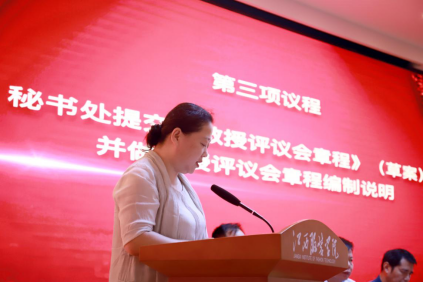 会上,教授评议会秘书长段婷向大会提交《教授评议会章程》(草案),并作了章程编制说明。同时介绍了教授评议会主任、秘书长和各专委会、教授分会成员组成。教授评议会成员徐照兴教授和杨志文教授作为教授代表发了言。