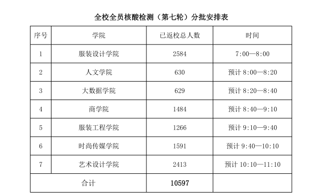 学工处精心安排,制定了详细的检测安排表,并提前通知到位,让大家提前做好准备;人事处组织全体校内教职工及家属参与检测,并针对特殊人员上门进行采样服务;后勤处对检测场地提前布置全面消杀,并保障防疫物资供应、医生志愿者餐饮;各个部门能力合作,保证了核酸检测有序、高效进行。根据分批安排表,早上7点第一批检测人员抵达采样点,大家戴好口罩,在志愿者的引领下井然有序排队等候。