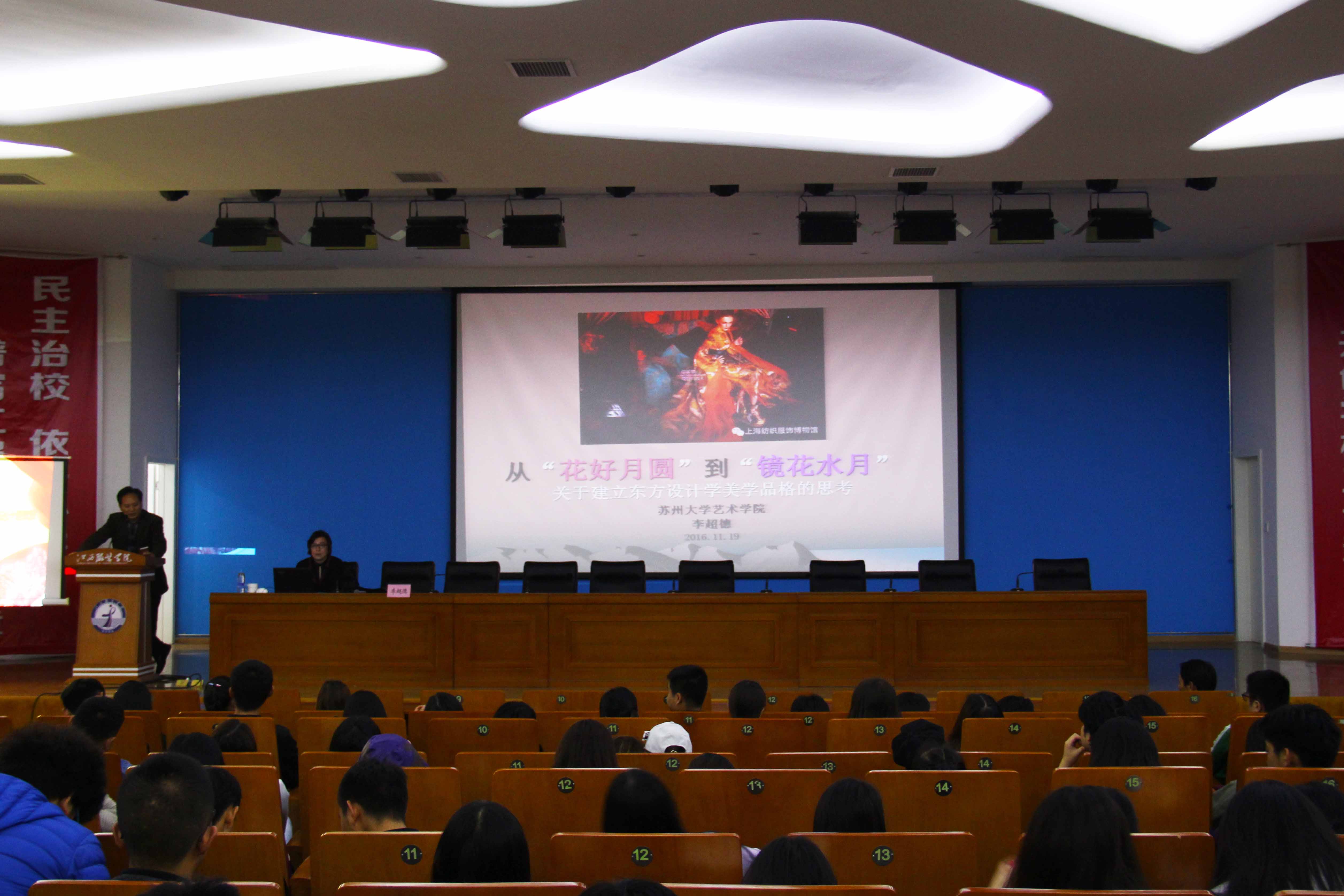 服装报讯(记者/陈楹 摄影/余红 祝瑾茹)11月19日晚,苏州大学艺术学院教授李超德应我校之邀,在思贤楼三楼报告厅作了一场题为“从‘花好月圆’到‘镜花水月’——中国风设计的思想”的专场讲座。