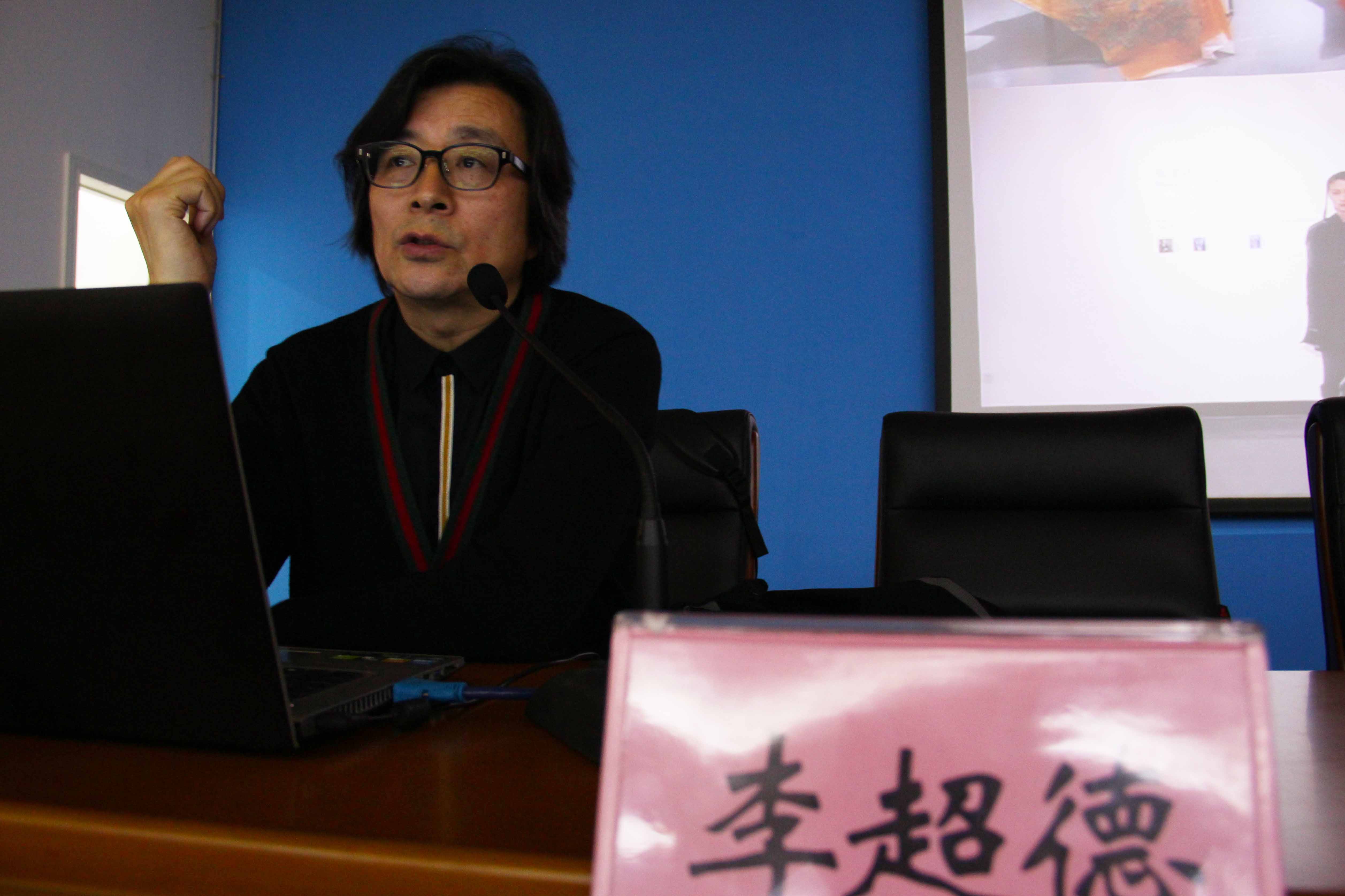 李超德教授首先阐述了讲座的主题。他说,“花好月圆”和“镜花水月”是两场分别在上海和纽约举办的大型“中国风”专题展览会,其中“花好月圆”是由东华大学联合中国服装协会和中国服装设计师协会等共同主办的一场当代中国风格时尚设计大展,本展览选了十位当代中国最具有代表性的服装设计师的作品,由此可以看出,“中国风格”对世界的影响越来越大,中国以及潜在的市场已经成为西方各大品牌的重要目标,这也是经济新常态下,消费大众期盼具有时代精神的中国风格时尚创新,这种风格能够在世界范围的流行中赢得彰显民族尊严的话语权。李教授表示,他所理解的东方设计的美学品味,是蕴含在设计产品中,既是契合于现代人生活的,它又摒弃了具象的形态,来表达某种内在精神和意志的产品。然而现在有许多产品没有内涵,正是由于该设计产品缺乏自己的设计主张、文化立场和文化关照,所以李教授建议大家要学会务实化,设计的产品要有灵魂,而不是一具空壳。