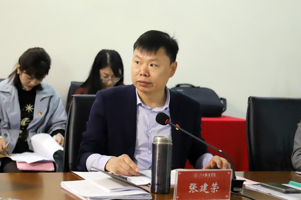 党委副书记张建荣从“坚持党的领导,把牢学校办学方向”“强化价值引领,深化思政理论教育”“注重队伍建设,夯实思政工作基础”“完善育人体系,推进‘三全育人’格局”等方面就2019年学校思想政治工作作了简要汇报。