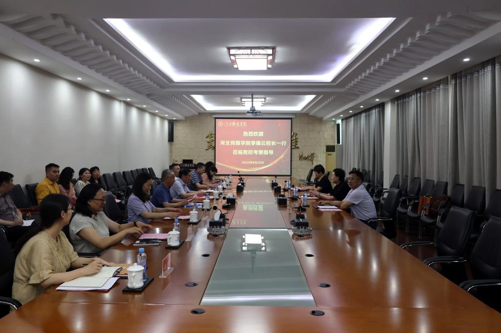 河北传媒学院校长李锦云对我校的热情接待表示感谢,介绍了河北传媒学院的基本情况,详细分享了学校办学和硕士授权单位建设工作中的经验做法,并对我校做好申硕建设工作提出了很多中肯建议。李锦云谈及河北传媒学院在办学过程中面临的诸多困难,通过一直保持“敢为”的进取精神,持之以恒的奋斗精神,不断加强自身建设,实现了河北传媒学院十几年间从职业学校向硕士学位授予单位升级的跨越式发展。李锦云表示对我校申硕充满信心,相信江服在薛家宝校长的带领下,在这样的跨省合作、帮扶推进下,阔步向前,必将书写民办高校新的辉煌!