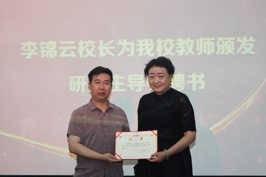 会上,李锦云校长为卢振邦等5位受聘教师颁发了硕士研究生导师聘书。时尚传媒学院院长甘文、艺术设计学院院长卢振邦分别代表研究生培养学院及硕士研究生导师进行表态发言,与会人员就联合培养研究生事宜进行了深入交流。