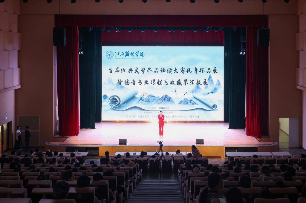 这次展示活动是我校全面落实党的二十大精神,加大国家通用语言文字推广力度,传承发展中华优秀语言文化,深化“典耀中华”主题读书活动的重要举措,同时也是根据教育部、江西省教育厅对第六届中华经典诵写讲大赛的相关通知要求举办的“诵读中国”经典诵读大赛江西赛区的校赛优秀作品集中展示,校长助理易城、教务处副处长李凯和时尚传媒学院院领导观摩了演出。