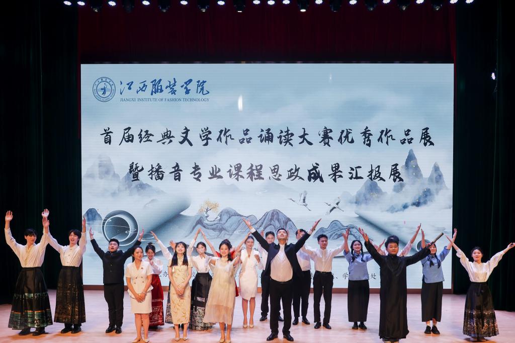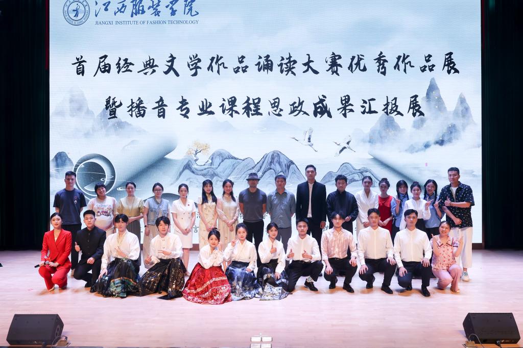 从四月赛事启动到最终的成果汇报展,时尚传媒学院播音与主持艺术、广播电视编导、戏剧影视美术设计等专业有大量师生参与其中。这一活动,实现了我校戏剧与影视学科内多专业的联动教学与实践。这次汇报展既是向全校师生汇报我校的备赛成果,亦是我校播音主持专业师生践行思政引领教学、项目驱动教学理念的一次创新尝试。铿锵有力诵经典,万众一心续文脉。