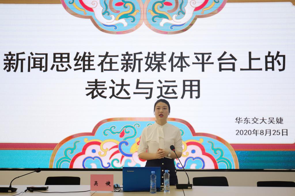 开班仪式结束后,来自华东交通大学的吴婕老师通过案例分析、图文等方式,展开了《新闻思维在新媒体平台上的表达与运用》的讲座,为参训人员分享了新媒体从野蛮生长到精细化运营中的注意事项。