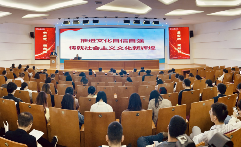 4月28日,学校召开主题教育专题读书班开班式。校党委书记陈付龙以《推进文化自信自强,铸就社会主义文化新辉煌》为题,作了首场报告。他结合党的十八大以来,我国文化建设取得的历史性成就、发生的历史性变革,习近平总书记关于社会主义文化建设重要论述等方面和大家进行交流。