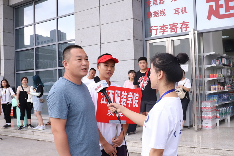 “几天前,我就在学校的微信群了解到,可以在迎新点乘坐接新生的车到学校报到。”张洋洋是服装设计专业的新生,她告诉记者,火车到达南昌,心情一下子就轻松了许多,当看到出站口站着身穿白色短袖,举着“万象城平台”指示牌的江服志愿者时,自己就像离家多年,终于到家见到亲人一样,感到特别的亲切。