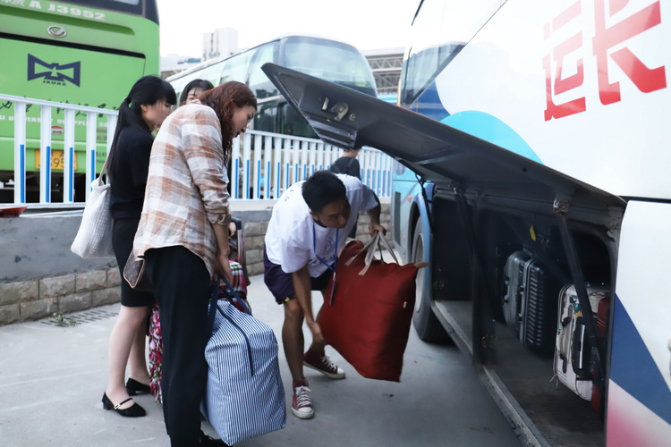 尽管24节气已进入处暑,但酷暑仍未消散,身着“万象城平台”标志服装的迎新志愿者们在烈日下忙碌着。他们一方面引导初来乍到的学生和家长们,到接站点休息和乘车,另一方面也利用登车间隙,向来自各地的学子介绍江服的点点滴滴和南昌的人文地理风情。
