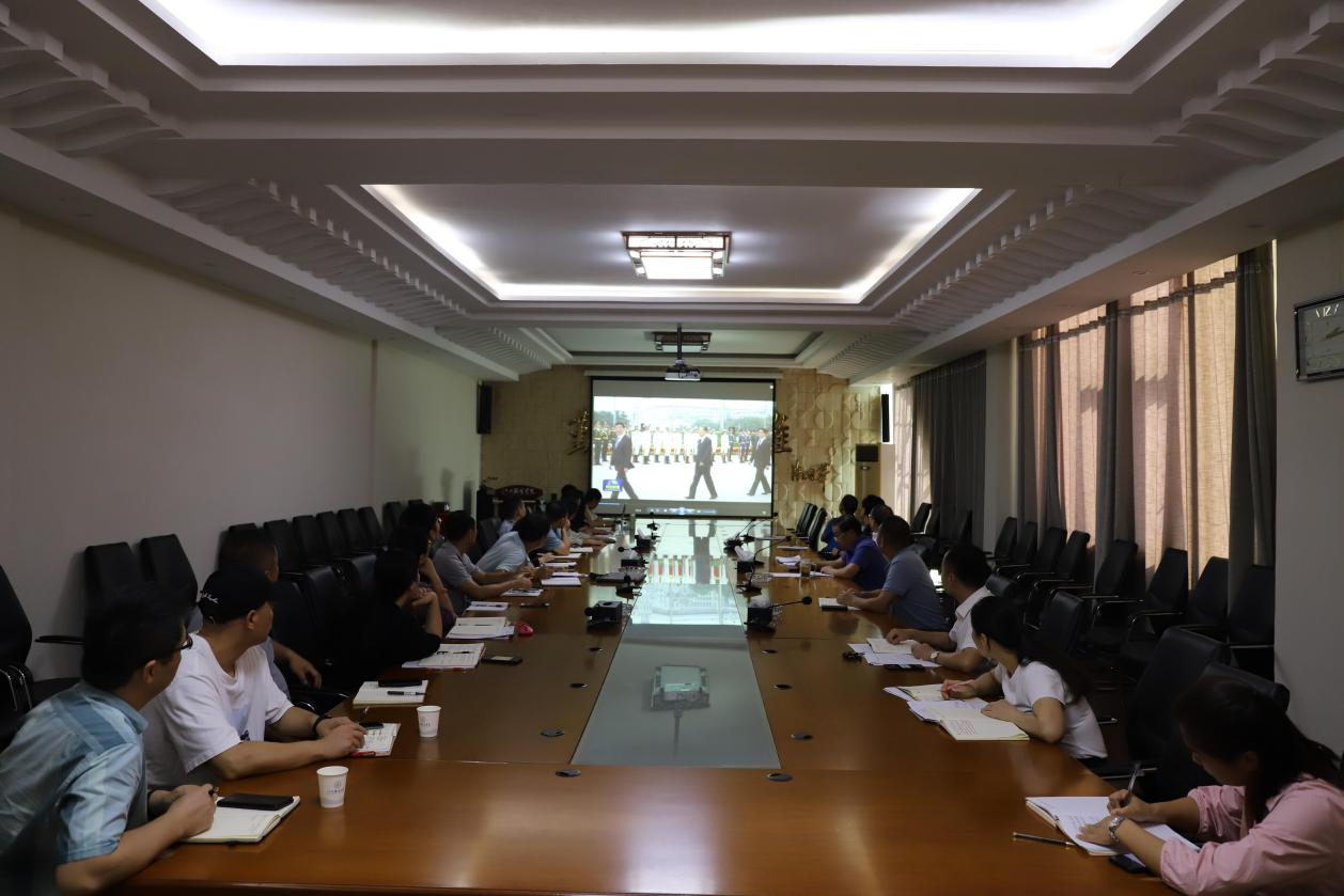 与会全体人员集中观看《习近平等党和国家领导人出席烈士纪念日向人民英雄敬献花篮仪式》视频。