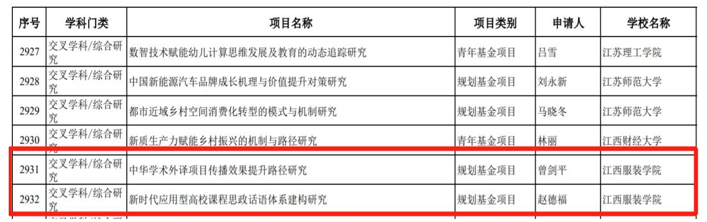 新闻中心讯(科技产业处 陈万金供稿) 近日,教育部社会科学司公示了2024年度教育部人文社科项目立项名单,我校科技产业处曾剑平教授申报的《中华学术外译项目传播效果提升路径研究》和大数据学院赵德福教授申报的《新时代应用型高校课程思政话语体系建构研究》获规划基金项目公示立项,是自我校申报教育部人文社科项目以来首次同时获批2项教育部人文社科项目立项,也标志着我校连续三年获批教育部人文社科项目,立项数位列我省民办高校第一!