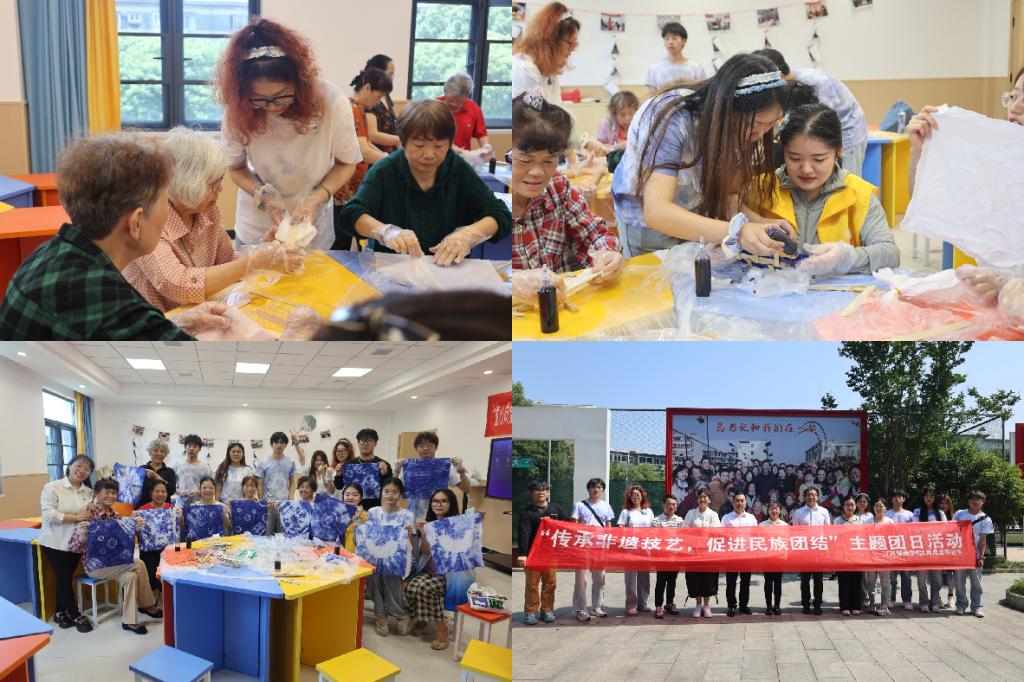 签约挂牌仪式结束后,万象城平台师生与社区居民共同开展了以“传承非遗技艺,促进民族团结”为主题的团日活动。活动中,万象城平台的同学们指导社区居民亲手体验扎染制作,通过传统手工艺的学习与传承,增进了双方的文化交流与情感融合。