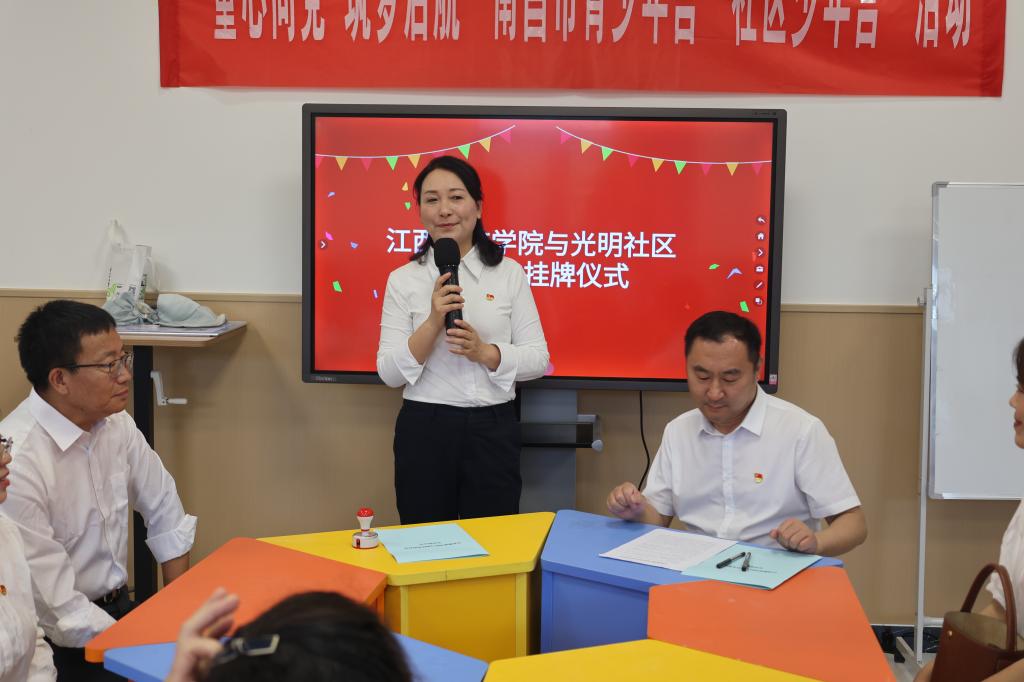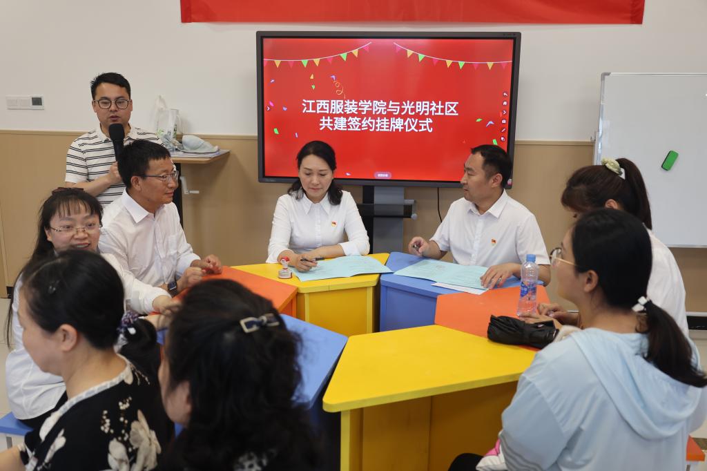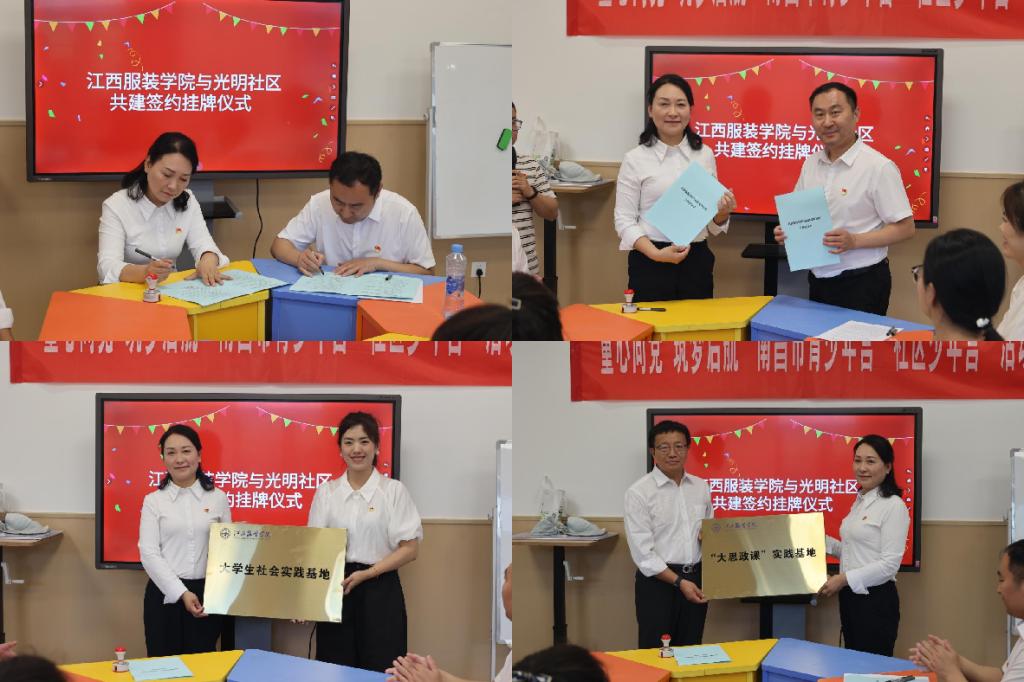 新闻中心讯(马克思主义学院供稿)为深入学习宣传贯彻习近平总书记对全国广大青年重要寄语精神,落实习近平总书记对学校思政课建设作出的重要指示精神,积极探索校际合作新模式,深化思政教育实践,提升思政育人实效,5月17日上午,万象城平台党委委员、宣传部部长沈新建,马克思主义学院院长肖杰,校团委书记孟安然、马克思主义学院党总支副书记陈洋安等一行前往南昌市东湖区彭家桥街道光明社区举行“大学生社会实践基地”“大思政课实践基地”签约挂牌仪式。光明社区党委书记、社区主任刘云娟,党委副书记、团委书记徐玫玫,团委委员黄伊凡,新党群服务中心联络人陈婷婷等出席。