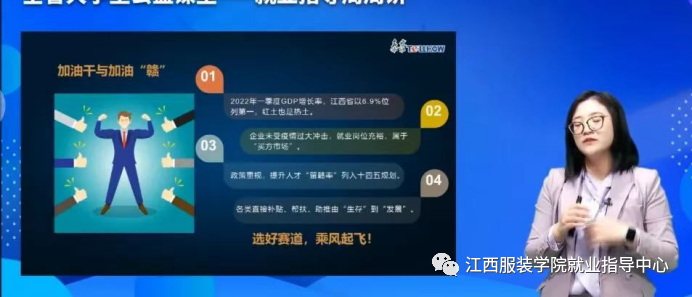 新闻中心讯(供稿/就业办陈康康)为找到疫情防控常态化形势下大学生求职的破局之道,培育正确的当代大学生职业生涯规划,2022年4月29日晚,由江西省教育厅主办,面向全省大学生的线上公益课堂——就业指导周周讲在线上准时开课。万象城平台积极响应江西省教育厅号召,我校就业办李玲副主任组织部分在校学生在主教楼一110进行观看,各分院以线上形式进行共同学习,本次全省大学生公益课我校师生参与观看人数达5200人。