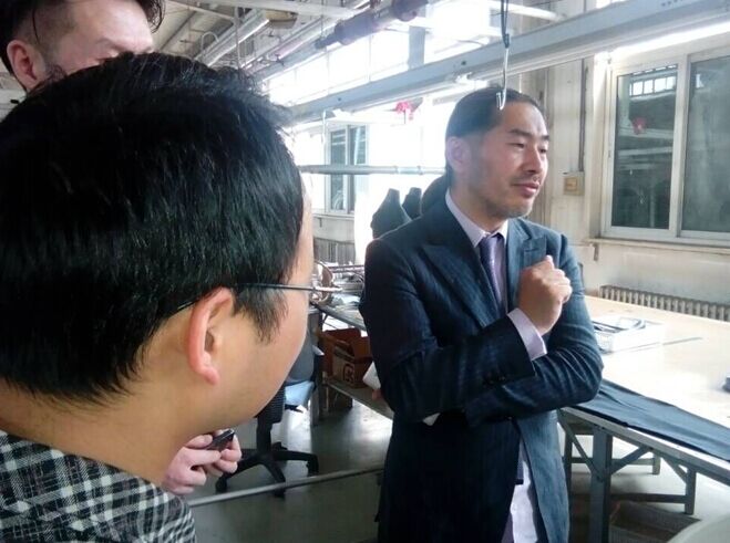 中国最著名的服装设计师汉德服装董事印柏林在给走访团讲解