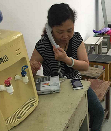 服装设计与管理分院赵万珍老师在给毕业生打电话