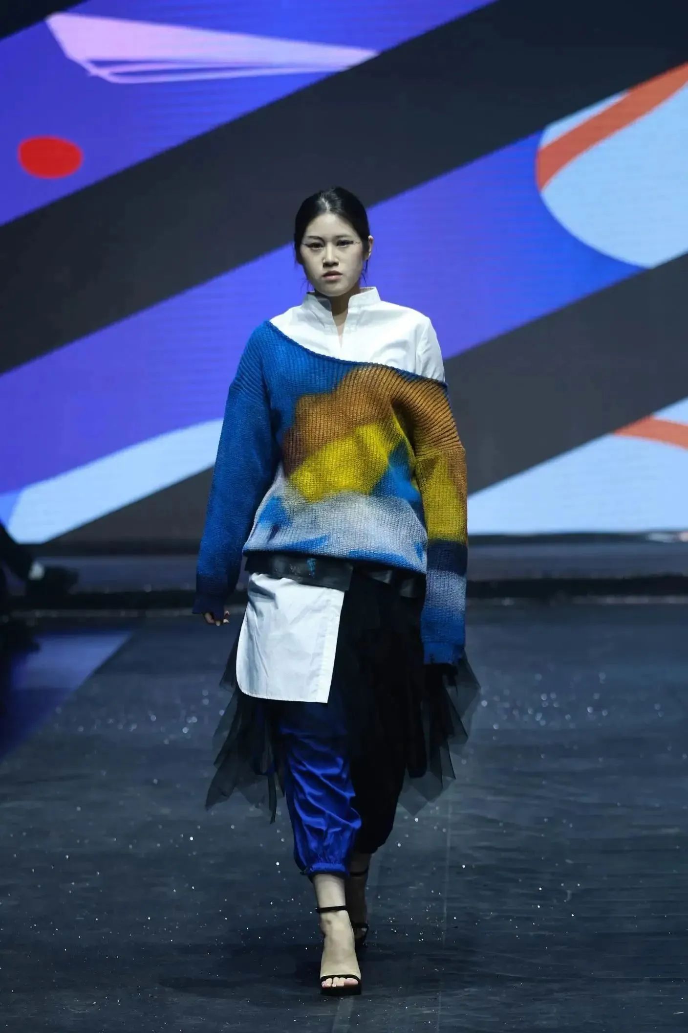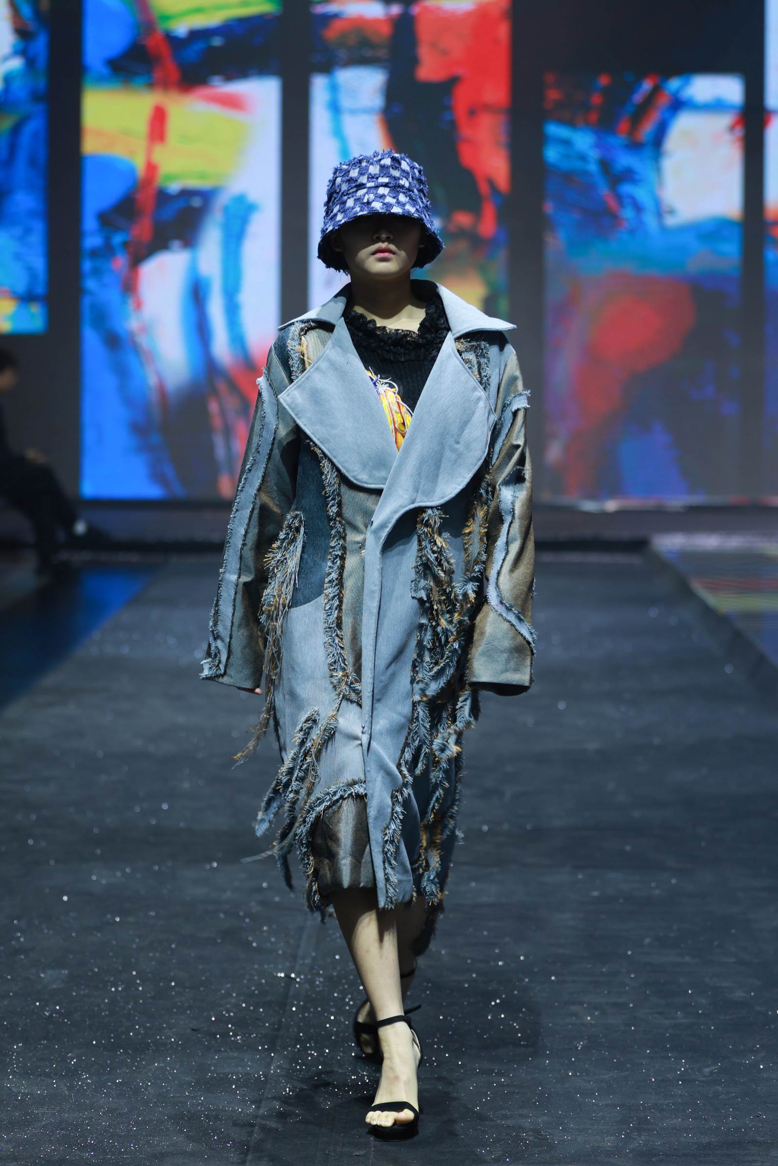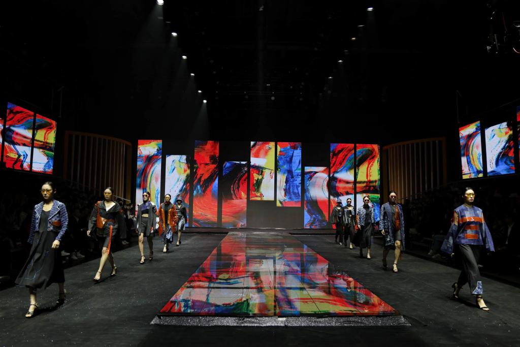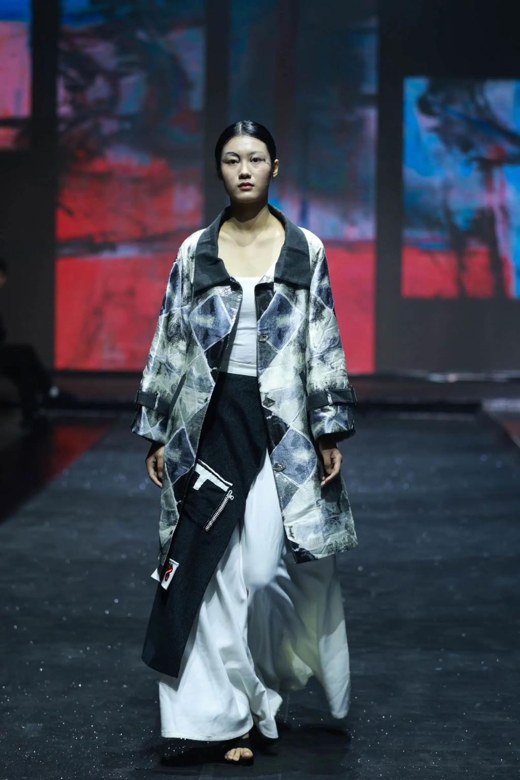 发布会上展演的服装作品涵盖了服装设计的多元风格,有牛仔类、羽绒棉服类、拼接类、纹样类等。每一件服装都有着它独特的故事和寓意,教师们从中国传统优秀文化中汲取灵感,在传统与创新之间寻找平衡。服装不仅蕴含实用性,更承载着丰富的文化内涵和艺术价值,明暗色系的视觉冲击以及冷暖色调的柔和过渡,再结合他们的专业知识和创新思维,都展示了教师们奋发向上的风采,以及较高的艺术修养和审美。他们对色彩的运用十分巧妙和独特,在视觉效果上吸引了现场所有观众的眼球,也赢得了观众的阵阵掌声。