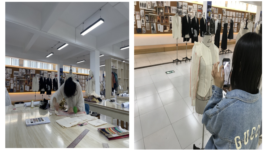本次课程中,金丽老师首先对上节课经典造型上衣(袖型变化)做了回顾,金丽老师特地提前录制了操作视频,带领大家一起回顾了上次课程的重点和难点。随后又在上次课程的内容上,拓深了袖型的变化设计,并对变化袖型进行了立裁示范,在制作过程中,她严谨细致,一丝不苟,仔细讲解每一步骤和要领,仔细讲解袖笼尺寸与袖肥的尺寸把握关系及功能性要求。金丽老师指出,立裁具有直观的优势,能够确认服装着装的状态,完成比例和量的确认,并且完成面料造型的确认,从而对平面结构进行确认与修正。