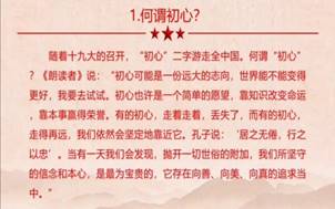 本次会议一共分为四个方面来阐述理想信念与初心的本源以及关系。首先阐述理想信念坚守初心的本源。《朗读者》中曾定义“初心可能是一份远大的志向,世界能不能变得更好,我要去试试……”,希望同学们能深刻认识到党的初心并摆正自己入党的初心,接着阐述何为理想信念以及共产党人的理想信念,并论述了理想信念的重要性,指出理想信念是共产党人精神上的“钙”。