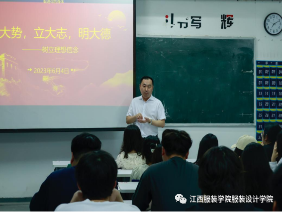 为推进学习贯彻习近平新时代中国特色社会主义思想主题教育走深走实,加强大学生思想政治教育,引领青年学生成长成才。6月4日晚,我校党委委员、宣传部部长沈新建以班主任身份来到主教楼421室,为21服设本科6班同学召开“顺大势、立大志、明大德”主题班会。