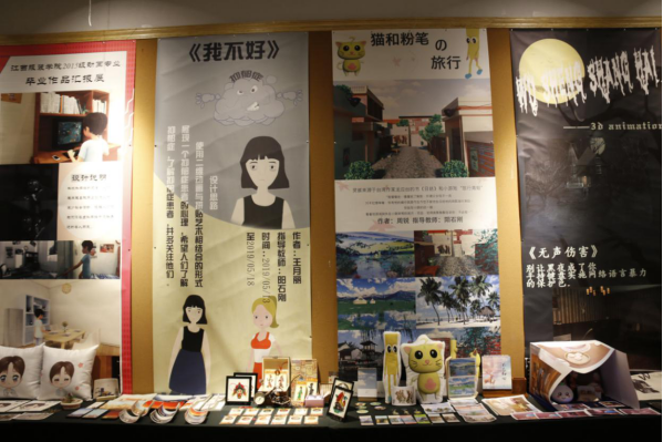 这些展出的优秀作品,是将毕业论文与毕业设计的结合,巧妙地利用课堂理论和实际实践。升华了动画专业毕业设计作品展的本身意义。展区精致的设计、展品精心的包装,使专业理论和具体操作实践进行了较好的诠释。
