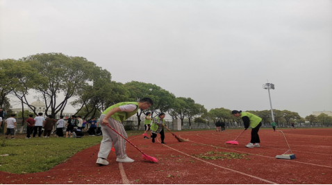 在老师们的指挥下,清扫过程中分工合作、井然有序。每个参与劳动的同学都积极热情,没有抱怨,大家都不嫌脏不怕累,仔细清理着各处的垃圾。同学们有的挥舞着扫筢,有的推着拖把奔走运动场之中。即使是看起来十分柔弱的女同学们也干劲十足,丝毫不逊色于男同学。