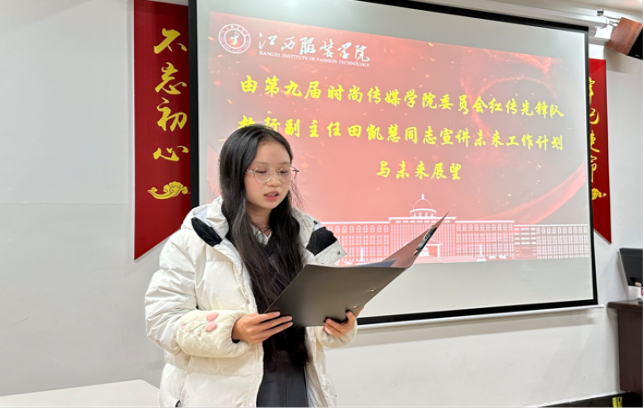 第九届红传先锋队副执行主任田凯慧、主任助理丁芹及各部门负责人宣讲了对于未来的工作计划与展望。在今后的学生工作中,不断的发掘自身的潜能、严于律己、努力做好各项工作、保持初心、坚定前行、起好带头引领作用,为实现学院高质量发展目标的道路上迈出坚实而稳健的步伐。