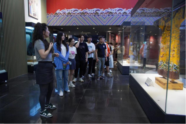 活动伊始,参与活动的师生们在中华服饰博物馆集合,由带队老师向同学们进行介绍与解说。带队老师从原始社会的皮毛服装开始,不断向现代推进,随着时代的变化,我们的服饰类型也在不断变化。