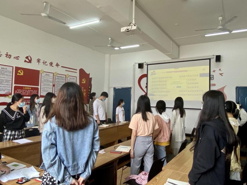服装工程学院讯(撰稿:郭嘉雯)为了巩固党史学习教育成果,进一步增强党员政治素养,5月11日中午12:40时,服装工程学院学生党支部在清河11栋104党员活动室开展了主题党日活动,专职组织员蔡燕萍、学生党支部宣传委员孟百川、学院全体辅导员、学生党支部全体学生党员和预备党员参加了此次活动,活动由学生党支部书记洪婷主持。