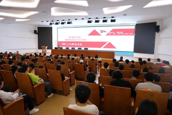 朱芳老师就人才培养定位、用人需求、行业概况、专业介绍成果展示方面,对服装设计与工艺专业展开叙述。她结合服装行业前景以及企业人才需求,通过数据对比的方式,使同学们了解服装设计与工艺专业人才需求排行、不同行业工资水平。针对培养高级应用型专门人才的目标,指出“理论+实践+大赛历练”的方法,帮助同学们更好的巩固专业知识并学以致用。