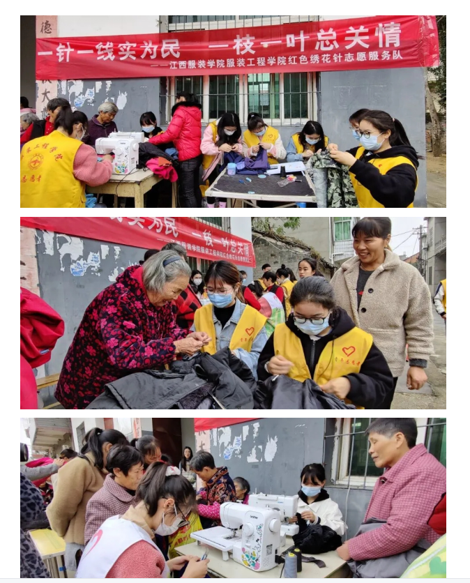 为深刻认识开展党史学习教育的重大意义,坚持以习近平新时代中国特色社会主义思想为指导,认真贯彻落实中央和省委部署要求,把学习党史同解决实际问题结合起来,推动党史学习教育往深里走、往实里走。2021年11月20日下午,服装工程学院深入开展“我为群众办实事”实践活动,由学院辅导员冯秀秀带领“红色绣花针”志愿服务团队,前往向塘村开展“一针一线”实事为民志愿服务。向塘镇文明办主任龚燕红到现场指导工作。
