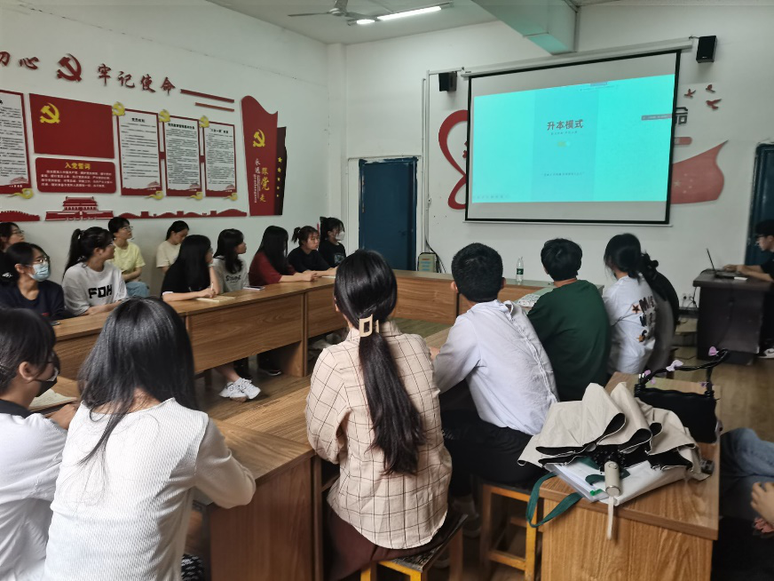 座谈会伊始,由张蕊蕊同学向同学们分享专升本考试的经验。张蕊蕊表示,在专升本备考的进程里,她把主要的学习精力用在了英语上,一开始刷题正确率很低,错题数量较多,但她并没有气馁,而是认真分析错误原因,逐一突破,反复琢磨,每天背单词、刷题,终于取得了很大的进步。在备考政治和专业课时,用不同颜色的笔作标记,将考试重点区分开来,背书时一目了然。