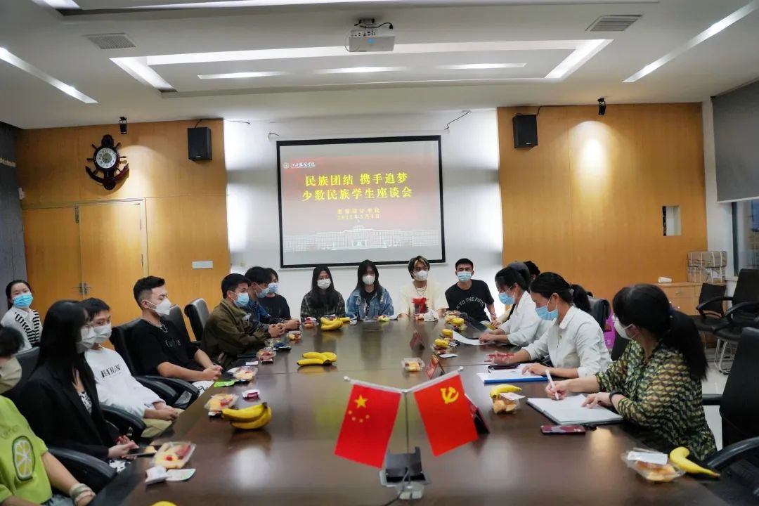 进一步推进服装设计学院少数民族学生教育管理服务工作,促进师生之间朋辈交流,为少数民族学生搭建沟通交流的良好平台。5月4日晚19时,服装设计学院于清源1栋4楼学院会议室召开少数民族学生座谈会,共同庆祝中国共青团成立100周年。学院党总支书记蓝岚、副书记周洪英、年级辅导员及少数民族学生代表出席了座谈会。会议由学工办主任张敬玲主持。