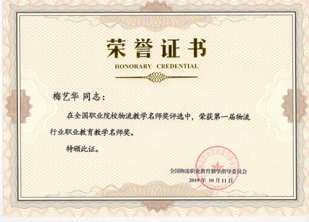 会上还举行了第一届“物流职业教育教学名师”奖颁奖典礼。表彰了全国各地46名在物流职业教育教学一线作出突出贡献的优秀教师。我校梅艺华教授荣获第一届全国“物流职业教育教学名师”奖。