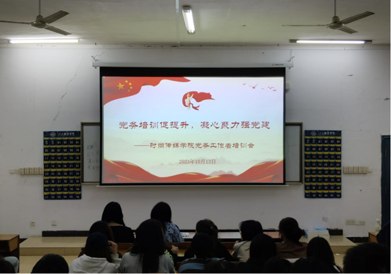 为深入学习贯彻习近平新时代中国特色社会主义思想,贯彻落实党的二十大精神,聚焦高质量党建引领高质量发展,时尚传媒学院于10月13日在艺术楼108教室召开新学期党务工作培训会议。会议由时尚传媒学院红传先锋队执行副主任潘韦宇、主任助理于亚男主持,红传先锋队全体成员、2022 级以及 2023 级团支书、生活委员和宣传委员参加。