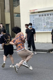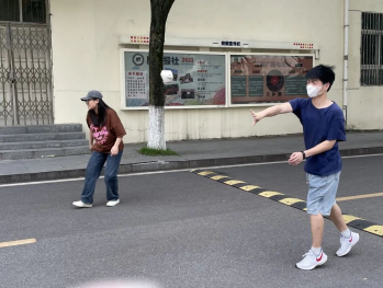 游戏名为扔沙包,将参加游戏的人分为两组,一组扔沙包,另一组躲沙包。扔沙包的一组再分两组站在场地的两端,躲沙包的一组站在中间。两头扔沙包的轮流砸中间躲沙包的人,如被砸中则退下。艺术楼前他们热情玩耍,属于他们的紧张、刺激、快乐、兴奋,种种情感都在他们脸上展现着。