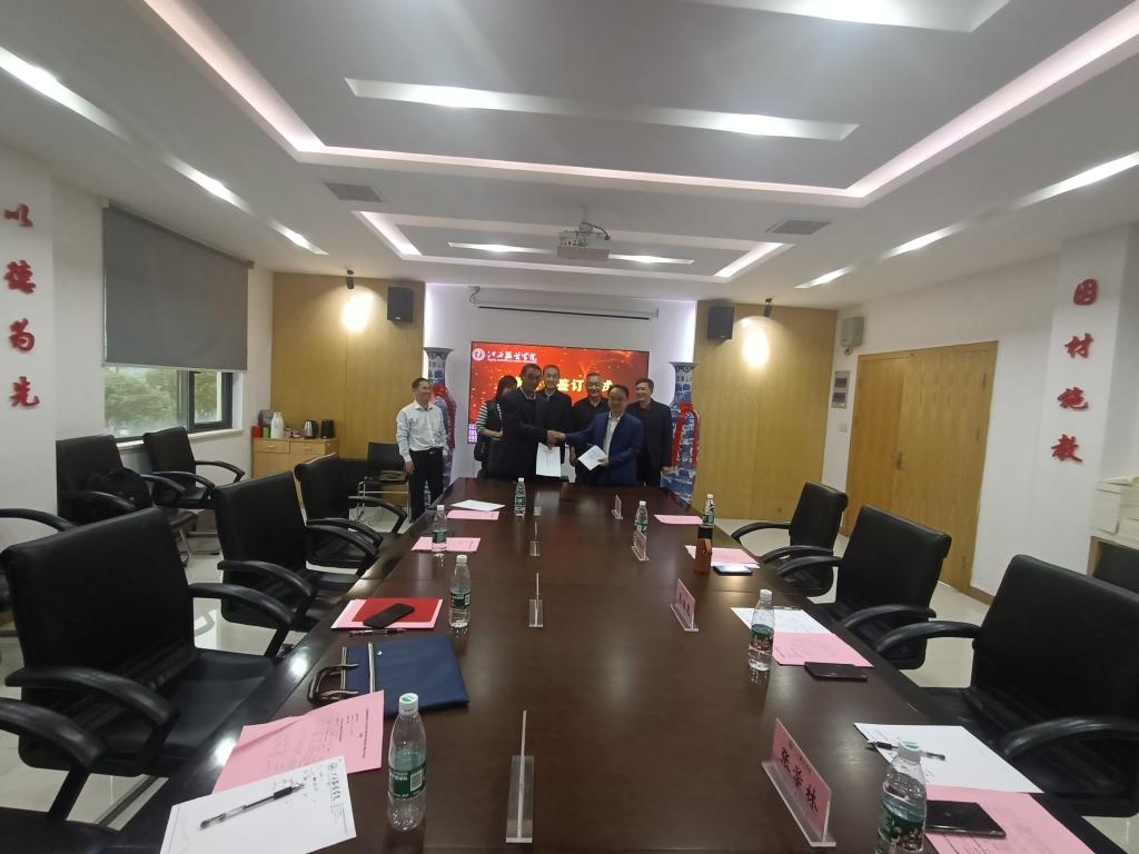 参观结束后,学院领导和协会领导共同出席了框架合作协议签约仪式。徐照兴院长首先致欢迎辞,然后向协会领导介绍了大数据学院的办学基本情况。大数据学院成立于2020年5月,成立以来,紧紧围绕服务纺织服装产业,履行为纺织服装行业培养数字化应用型人才和助力纺织服装行业数字化升级的办学使命,获得了江西省高水平本科教学团队1个、首批江西省虚拟教研室1个,江西省教学成果奖一等奖1项,中国纺织工业联合会教学成果特等奖1项、二等奖1项,国家级一流本科课程1门,省级一流本科课程5门,省级精品在线开放课程3门,省级课程思政示范课程1门,出版教材4部,教师发表论文30篇,主持省级及以上纵向课题14项,横向课题5项(到账经费:156万元),发明专利4件,实用新型专利12件,计算机软件著作权登记16件,江西省科学技术成果2项,学生获得30项省级以上学科竞赛奖励。徐院长说,尽管这些年我院不断努力,也取得了一定的成绩,但也存在不少的问题,希望协会领导对学院的工作提出宝贵的建议。