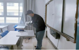 他们正在积极地开展前期准备工作,相互配合、默契十足,他们正在将教室前后的黑板擦拭干净,呈现出焕然一新的教室。