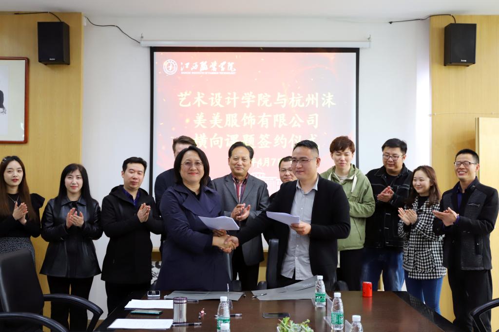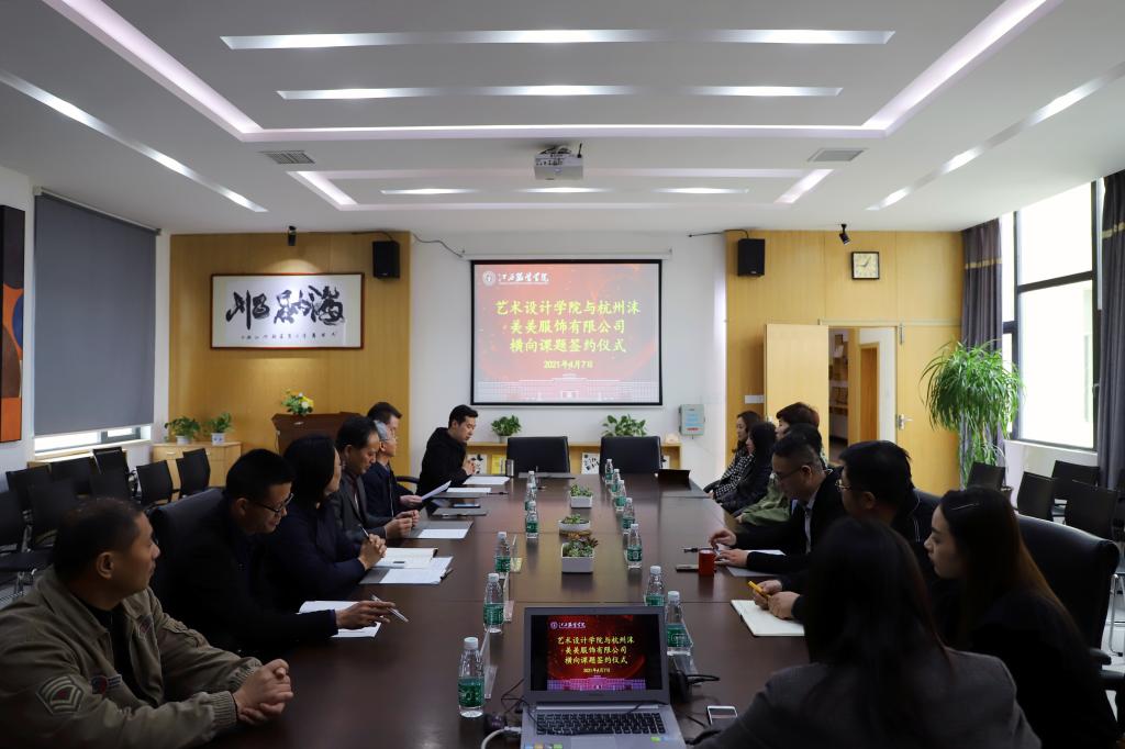 新闻中心讯 4月7日上午9:00,艺术设计学院与杭州沫美美服饰有限公司就“基于数字媒体艺术线上营销策划与服务”项目签订科技服务合同,合同金额总计50万元。横向课题签约仪式在艺术设计学院会议室举行。学校副校长陈东生、科研处处长张宁、艺术设计学院院长刘琳、副院长卢振邦、何治国、院长助理雍自高、总经理杜长城、副总经理陈平及课题组成员出席。
