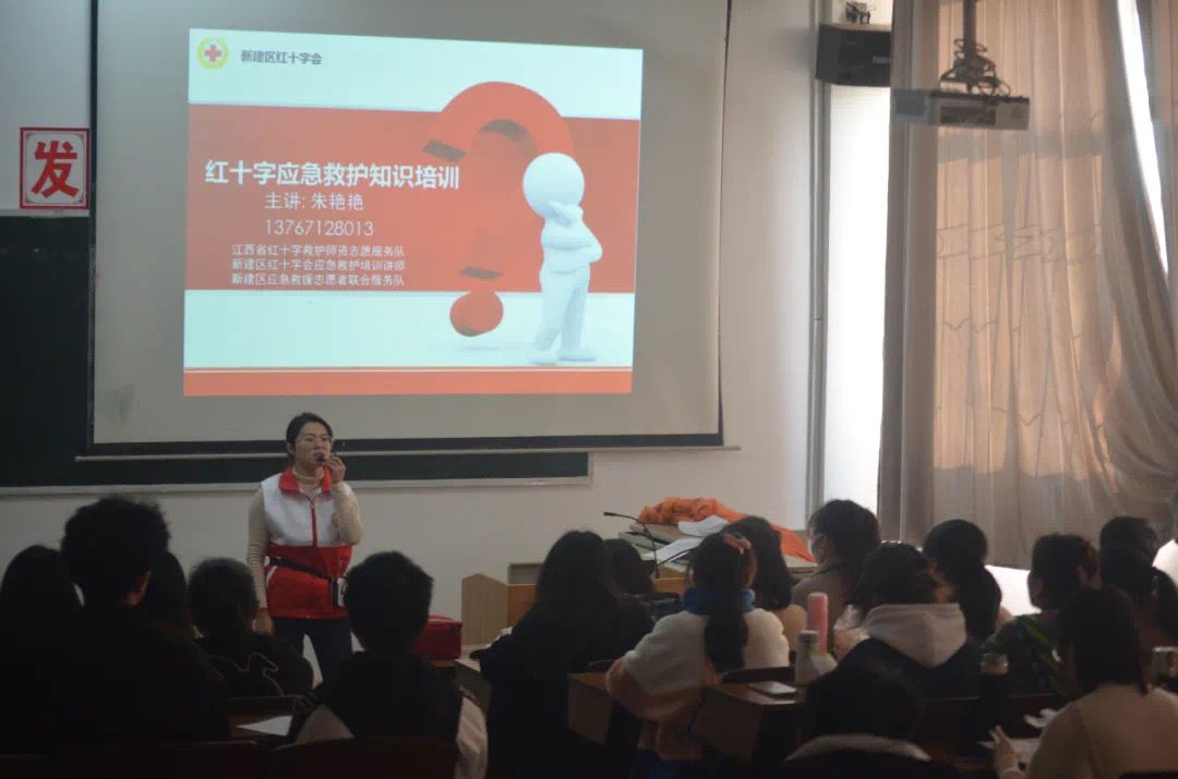 本次课程特邀江西省红十字应急救护培训中心的培训讲师进行授课。培训课程分别从“救护知识概论、心肺复苏、创伤急救、意外伤害、突发知识、理论知识笔试”等六个方面为师生普及救护常识。