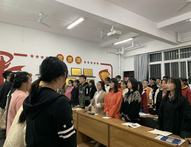 出席本次开班仪式的有学院党总支副书记蓝岚、学生党支部委员蔡燕萍、冯秀秀、范斌、洪婷,辅导员李静雯、卢永红、孟百川以及参加培训的全体学员。仪式由洪婷主持。