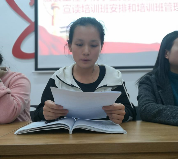 随后,洪婷同志宣读了一系列学习安排与培训班规定。系列规定为学员们深入学习贯彻习近平新时代中国特色社会主义思想、加强对入党的认识、提高思想政治理论水平、确保发展党员的质量上提供坚实保障。