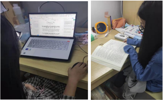 制订学习计划,每天上课她都抓紧间完成自己的学习任务,把节省下来的时间充分的利用起来,听课查阅资料,认真看书,并参与学校图书馆的相关活动,通过“百部经典阅读打卡”,让她重新爱上了阅读。